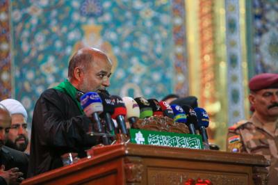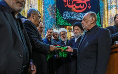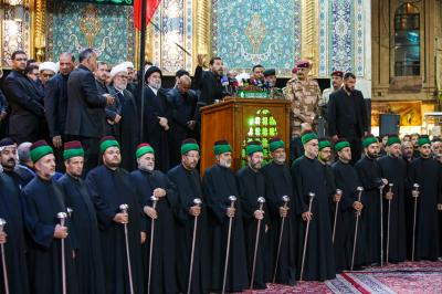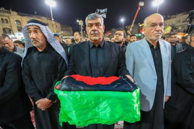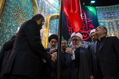 Ardından on bir yıldır geleneksel olarak düzenlenen Irak’ın bir eyaletine sembolik sancak alıp teslim etme merasimi yapıldı. Bu yıl sembolik sancak Mukaddes Hz. Abbas (Allah’ın selâmı üzerine olsun) Türbesi Şerî Mütevellisi Seyyid Ahmed Safî (İzzeti daim olsun) tarafından; eyaletteki Huseynî hizmet grupları adına Müminlerin Emîri Hz.İmam Ali b Ebi Talib’in (Allah’ın selâmı üzerlerine olsun) şehri Necef-i Eşref’e teslim edildi.