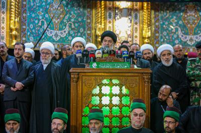 Gelenek olduğu üzere merasim; büyük facianın sahibi, Şehitlerin Efendisi ve Hürlerin Efendisi Hz.İmam Huseyn’in (Allah’ın selâmı üzerine olsun) Mukaddes Ziyaretgâhı’nda başladı. Kur’ân-i Kerîm tilaveti ile başlayan törende Mukaddes Hz. Huseyn (Allah’ın selâmı üzerine olsun) Türbesi Şerî Mütevellîsi Şeyh Abdulmehdî Kerbelâî (İzzeti daim olsun) bir konuşma yaptı. Ziyaretçilere ve yeryüzünün doğusunda ve batısındaki Ehlibeyt (Allah’ın selâmı üzerlerine olsun) dostlarına taziye sunarak söze başlayan Şeyh Kerbelâi’nin konuşmasında şunlar yer aldı: ‘Bu gece bu ayın başlaması ile birlikte; tarihte Ehlibeyt’in (Hepsine selâm olsun) bu ümmetteki mazlumiyetini temsil eden yüce hatırayı (yeniden) yaşamaktayız. Tarih boyunca yaşanan en büyük insani facianın olaylarına yeniden tanıklık etmekteyiz. Öyleyse mutlaka ibretleriyle de ağlayışlarıyla da bu hatırayı yaşamalıyız. İbretlerinden; her sene ve her zaman yenileyip yeniden yaşatmamız gereken şeyleri alıp hatırlatalım. Şüphesiz ilk olarak Hz. Huseyn ıslah (reform) ve yozluğa karşı mücadele, ikinci olarak da iyiliği emredip kötülükten alıkoyma sloganıyla çıkıp ayaklanmıştır. Öyleyse sakınınız, sakınınız ey Huseyn’in evlatları ve ey Huseyn’in aşıkları… Sakınınız, sakınınız iyiliği emredip kötülükten alıkoymaktan… Bu farzı koruyunuz ve kötülükler ile çirkin işler karşısında durmakta Hz.Huseyn’in (O’na selâm olsun) istediği gibi olunuz. Fısk ve fücur ehli onları caydıran olmadan, utanmaksızın o işleri yapar hale gelmiştir (çünkü).”