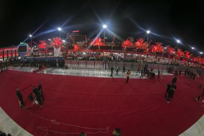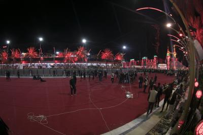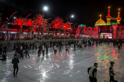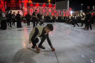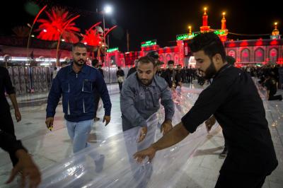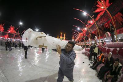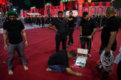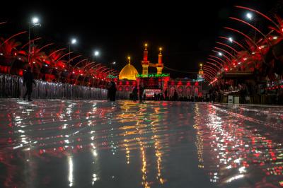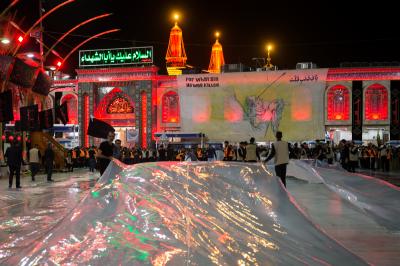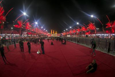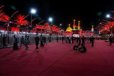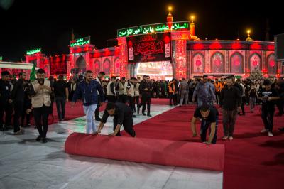 Die Abteilung Bayna Al-Haramayn (Zwischen den beiden heiligen Schreinen) hat als Teil ihrer anvertrauten Aufgaben während des Ziyarats zum 10. des heiligen Monats Muharram den Zugangsplatz (Bayna Al-Haramayn) mit rotem Teppich bedeckt, gemäß den spezifischen Maßen dieses Gebiets, das sich von dem Tor des heiligen Schreins von Imam Al-Hussein –Friede sei mit ihm- bis zum Tor des heiligen Schreins von Aba Al-Fadl Al-Abbass –Friede sei mit ihm- erstreckt.