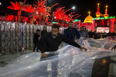 Die bedeckte Fläche beträgt mehr als 14.000 Quadratmeter, zuvor wurde dieselbe Fläche mit Nylon als Schutz verlegt, da der Hof mit Marmor bedeckt ist, was die Bewegung der Millionen Trauernden, die am Trauerritual Twayreej Marches (Rakdat Twayreej) teilnehmen erleichtern würde