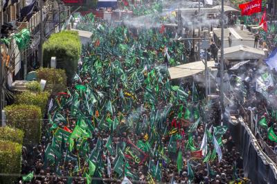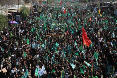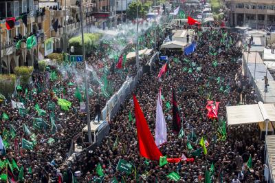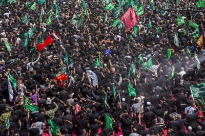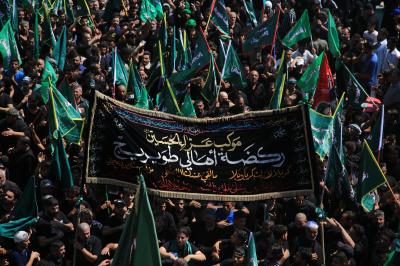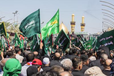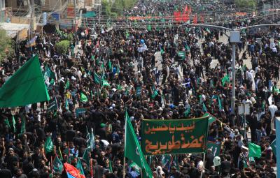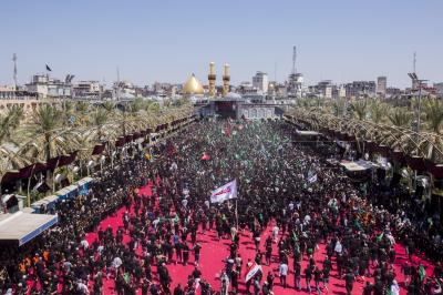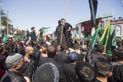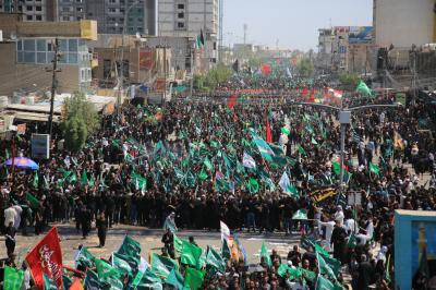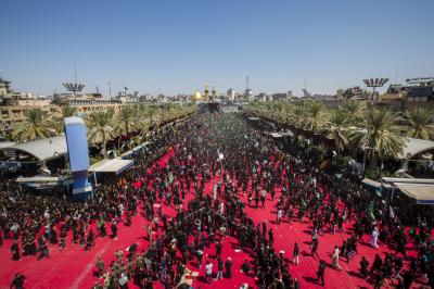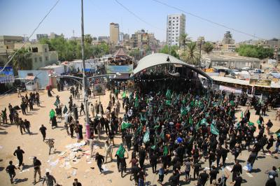Von diesem Punkt aus laufen die Teilnehmer in Richtung Jumhuriya-Straße zu den Grabstätten von Imam Hussein und Abu Fadl al Abbas (Friede sei mit ihm), während sie laut „Ya Hussein“ [Oh Hussein] rufen und ihre Trauer zum Ausdruck bringen.