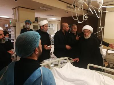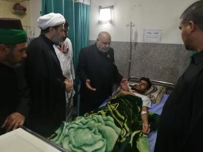 The delegation, which included a number of scholars of the holy shrine and a group of Sayeds servants, accompanying His Eminence the Senior Official of the Imam al-Hussayn's (p) Holy Shrine; Sheikh Abd al-Mahdi al-Karbalai. They conducted a tour to visit the wounded in hospitals to check on their health and follow-up treatment after suffering injuries in this unfortunate incident.