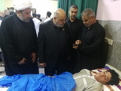 A delegation of the al-Abbas's (p) Holy Shrine headed this morning of the 11th Muharram 1441 AH, corresponding to September 11, 2019, to visit the injured in the stampede during the condolences ritual of Rakdhat Twayreej on the 10th of Muharram, who are receiving treatment in Zayn al-'Abideen Hospital, Al Kafeel Hospital and Al Husseiny General Hospital in the holy city of Karbala. The delegation conveyed the greetings of the Senior Official of the Shrine; his eminence Sayed Ahmad al-Safi and his prayers for them for a speedy recovery.