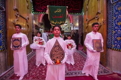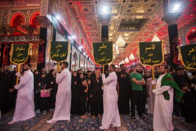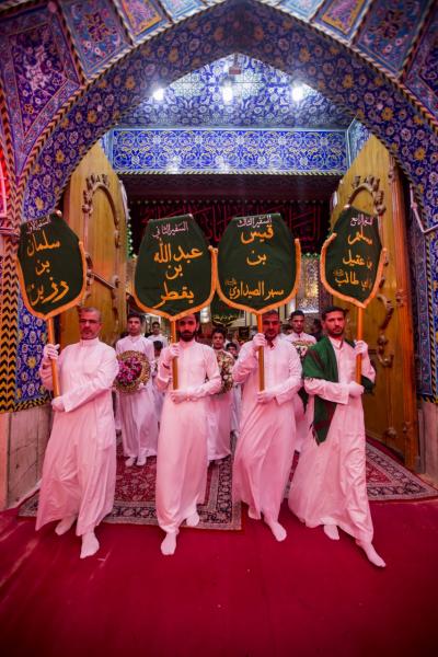 این مراسم با حضورخادمان حضرت ابوالفضل العباس (علیه السلام) و برخی کودکان سفید پوش حامل قرآن و پارچه های حاوی اسامی شهدای واقعه کربلا است، آغاز گردید و طی آن دسته عزاداری قنادیل السماء باحرکت از صحن مطهر حضرت ابوالفضل العباس (عليه السلام) و عبور از بین الحرمین وارد حرم مطهر حضرت سید الشهداء (عليه السلام) شد.