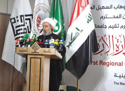 Es folgte das Wort des Ministeriums für Hochschulbildung und wissenschaftliche Forschung, das der Unterstaatssekretär des Bildungsministers, Dr. Musa Al-Musawi, hielt. Dann kam die Rede der Al-Amid-Universität, die von ihrem Präsidenten, Dr. Moayad Al-Ghazali, gehalten wurde.
