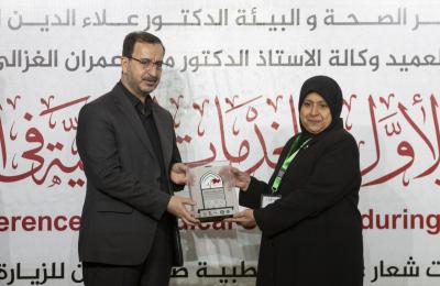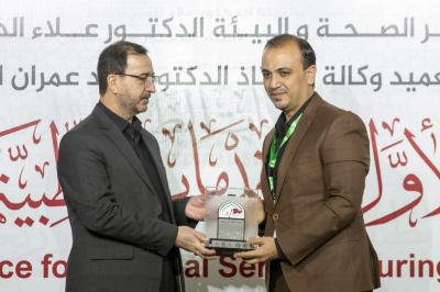 Erstens: Dr. Osama Abdul Hassan vom der Al-Kafeel Polyklinik mit dem Titel: (Die Rolle wissenschaftlicher Forschung und strategischer Planung bei der Entwicklung medizinischer Dienstleistungen für das Ziyarat im heiligen Karbalaa).