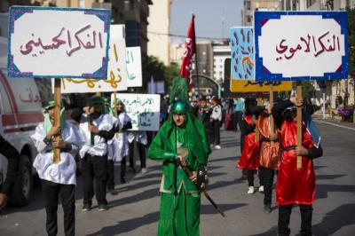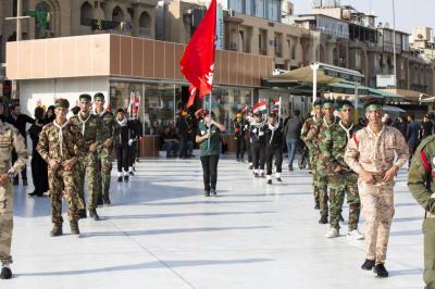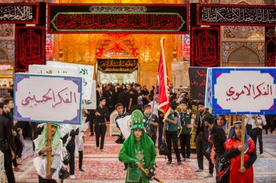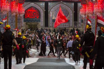 این راهپیمایی از منطقه باب بغداد به سمت حرم مطهر ابی الأحرار (عليه السلام) حرکت کرد تا ضمن ابراز تسلیت به محضر مقدس صاحب العصر والزمان حجت بن الحسن عسکری (عجّل الله تعالى فرجه الشريف) با حضرت سيّد الشهداء (عليه السلام) تجدید عهد نمایند. سپس عزاداران درحالیکه پرچمهای سیاه عزا در دست داشتند با عبور از بین الحرمین به سمت حرم مطهر حضرت ابو الفضل عبّاس(عليه السلام) حرکت کردند. طی این مراسم صحنه هایی از واقعه کربلا و ویژگی های یاران امام حسین (علیه السلام) که شامل جانفشانی، ایثار و از خود گذشتگی می شود به تصویر کشیده شد.