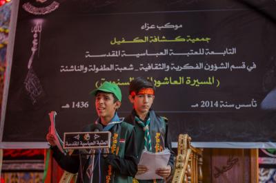 راهپیمایی عزاداران انجمن پیشاهنگی الکفیل وابسته به بخش کودکان و نوجوانان آستان قدس عباسی بعد از ظهر روز (20 محرّم الحرام 1441هـ) مصادف با (31 شهریورماه 1398) برای چهارمین سال متوالی وبا مشارکت بیش از دویست نیروی پیشاهنگی انجمن آغاز شد.