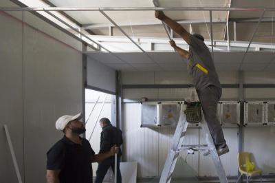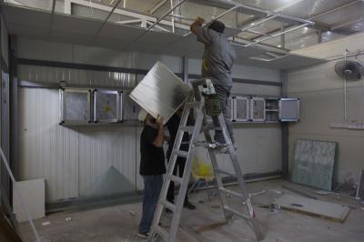 وأشار: "إنّ نوع البناء المستخدم في القاعة الجديدة هو الهياكل الحديديّة (steel structures)، حيث أنّنا بدأنا العمل منذ ما يقرب من شهر وبواقع (12) الى (15) ساعة عمل يوميّاً".