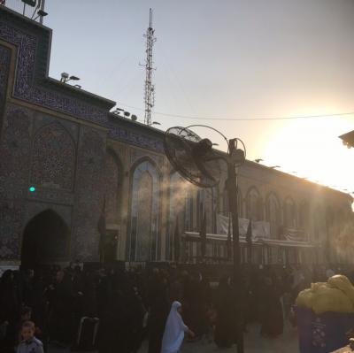 The head of the department, Engineer Samir Abbas, added: "The al-Abbas's (p) Holy Shrine seeks to improve the services provided to those who visit the shrine of Aba al-Fadl al-Abbas (peace be upon him), to perform their Ziyarat ritual in an atmosphere of tranquility and spirituality, and it works to develop those services as well as new ideas that create all means aimed at their comfort, such as what we recently started in the project of air conditioning, through the installation of a number of spray fans and water mist columns to cool the air in the open spaces.