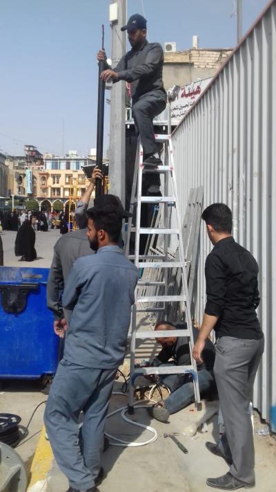 He continued: "A technical team specialized in installation, erection and wiring works has started work after taking plans for the places where the fans will be installed, which are witnessing intense visitors movement such as the area between the two holy shrines and Al-'Alqami Street and the streets of Baghdad gate. The work is continuous day and night to accomplish it on time, as the spray fan system is the best and most suitable for outdoor air conditioning. "