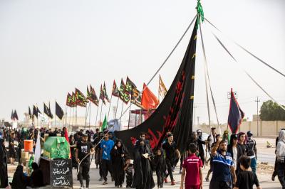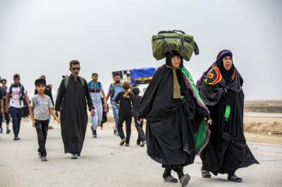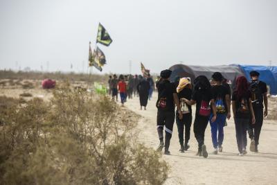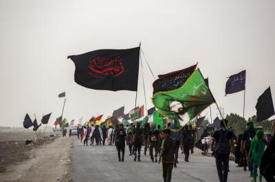 The Hussayni love convoy of the pilgrims walking to holy land of Karbala, continue with steady pace to reach the holy shrine of the Master of martyrs (peace be upon him) to perform the rituals of Arba'een. All they hear is their hearts' beats repeating the name of "Hussayn", longing to show their love to perform the rituals to the degree of sacrifice and martyrdom.