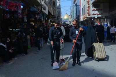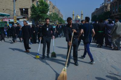 جهودٌ استثنائيّة وخدماتٌ متنوّعة يقدّمها قسمُ ما بين الحرمين الشريفين التابع للعتبتين المقدّستين الحسينيّة والعبّاسية لزائري كربلاء المقدّسة، القاصدين زيارة الإمام أبي عبد الله الحسين وأخيه أبي الفضل العبّاس(عليهما السلام) في ذكرى الزيارة الأربعينيّة المليونيّة، التي حطّمت كلّ الأرقام من حيث عدد الزائرين، ومن جملة الخدمات التي يقدّمها هي المحافظة على نظافة الساحة وما يجاورها سواءً كانت المحيطة بالمرقدين الطاهرين أو الشوارع المؤدّية اليهما.