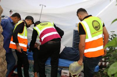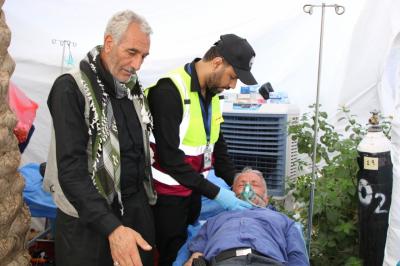 - Déploiement d'équipes d'urgence à l'intérieur du sanctuaire chargées de secourir les cas surveillés ou reçus, avec transfert des cas critiques au centre d'évacuation sanitaire le plus proche. Chaque équipe est composée de (5) ambulanciers paramédicaux équipés d'une civière et d'ambulances nécessaires. .