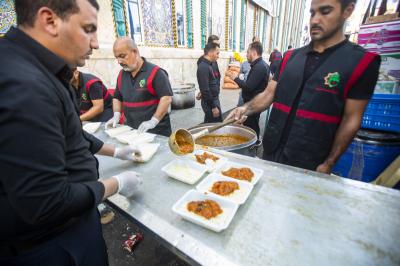 يُشار الى أنّ الوجبات المقدّمة منوّعة وتكون بواقع ثلاث وجبات روعيت فيها أذواق الزائرين، وما تقدّمه المواكب المجاورة من وجبات لكي لا يحصل تبذير، والتوزيع يكون عبر أربعة منافذ ثلاثةٌ خارج الصحن الشريف وواحد داخله الذي هو قاعة ضيافة المضيف، هذا بالإضافة الى وجباتٍ بينيّة توزّع بين هذه الوجبات الرئيسيّة.
