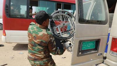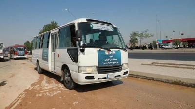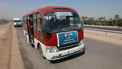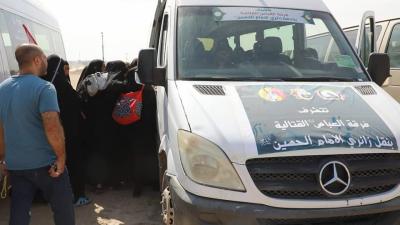 Der Vorgesetzter der Einheit von Um Al-Banin -Friede sei mit ihr- Haj Shaker Schani sagte: "Die Fahrzeuge der Einheit wurden mobilisiert, um Besucher von den Gernzübergängen zu der heiligen Stadt Karbala zu bringen, oder an die Grenzen der Provinzen kostenlos zu transportieren, um an den Fußmarsch der Millionen von Besuchern zu bringen, damit tragen wir auch zu deren finanziellen Unterstützung bei. Da sie von innerhalb und außerhalb des Irak kommen. "