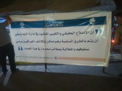 Hali yake sawa na taasisi zingine za kisekula hapa Iraq na kigezo cha wafanyakazi wa Atabatu Abbasiyya tukufu, chuo kikuu cha Al-Ameed chini ya kitengo cha malezi na elimu ya juu kimetangaza kuunga mkono watu wanaofanya maandamano ya amani na kudai haki zao walizo pewa kikatiba na kuungwa mkono na Marjaa Dini mkuu.