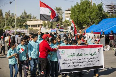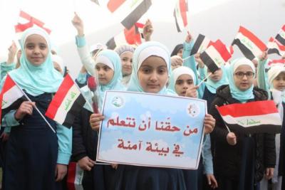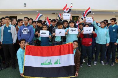 Non seulement les activités scolaires ont été mis en place, mais les élèves des écoles Al Ameed ont manifesté de manière solidaire sur la place de manifestation au cœur de la ville sainte de Karbala, pour participer à des manifestations pacifiques portant des drapeaux iraquiens, scandant des slogans appelant à la réforme et le statut du pays.