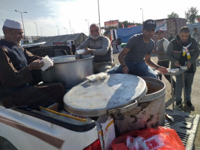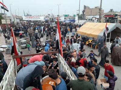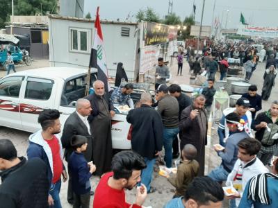 - Preparation of thousands of meals prepared in the host restaurant of the al-Abbas's (p) Holy Shrine, and distributed to them in the squares where they gather.