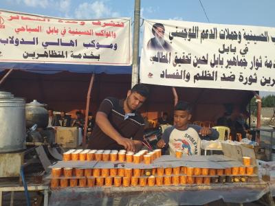 The Relief and Support Division of the al-Abbas's (p) Holy Shrine through its units deployed in a number of governorates and the associated logistical support processions, continues tirelessly to support the movement of peaceful demonstrations and demonstrators, including the Babylon Governorate Unit that harnessed its efforts to provide what is needed for the demonstrators, while they are in the demonstration yards in three governorates (Babylon - Karbala, Baghdad).