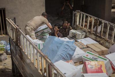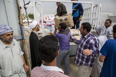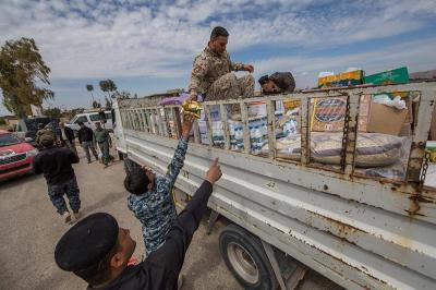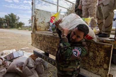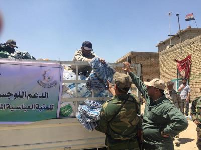 - دعم القوّات الأمنيّة والحشد الشعبيّ مادّياً ومعنويّاً في ساحات القتال، فشمل تزويد المقاتلين بمبالغ عينيّة فضلاً عن نواظير ليليّة وملابس عسكريّة ومواد غذائيّة متنوّعة جافّة وطريّة ولحوم ومياه، بالإضافة الى مواد تكميلية اخرى.