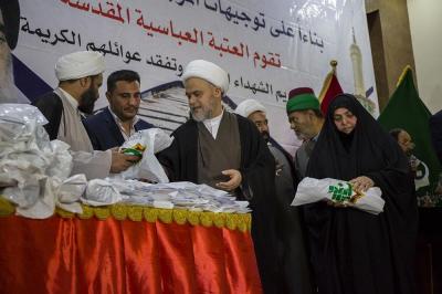 - التواصل مع عوائل الشهداء ودعمهم ماديّاً بمبالغ معيّنة لكلّ عائلة شهيد، حيث يتمّ تسليم المبلغ لذوي الشهيد بصورةٍ مباشرة من خلال التشرّف بزيارتهم، أو الاتّصال بهم للحضور الى مناطق قريبة من محلّ سكناهم أو داخل العتبة العبّاسية المقدّسة، أو بحسب اختيار العائلة في حال تعذّر وصول وفد العتبة المقدّسة إليهم.