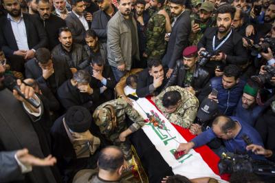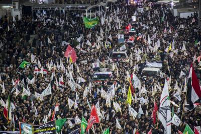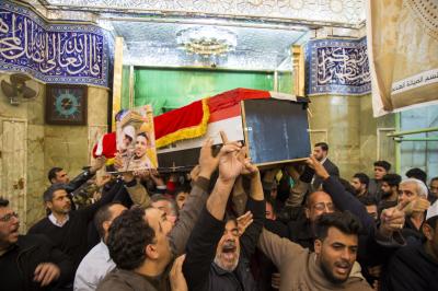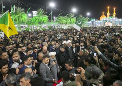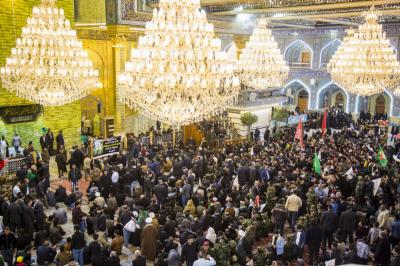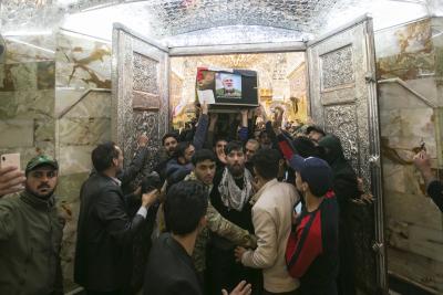 Am Samstag den 8. Jumada I 1441 / 4. Januar 2020 nach den beiden Abendgebeten haben die beiden Heiligen Husseinitischen und Abbassitischen Stätten, die Trauerprozession, der Märtyrer der Volksmobilisierungseinheiten der Fatwa zur Heiligen Abwehr, die von dem tückischen amerikanischen Bombenangriff in der Nähe von Bagdad International Airport ermordet worden sind, empfangen.