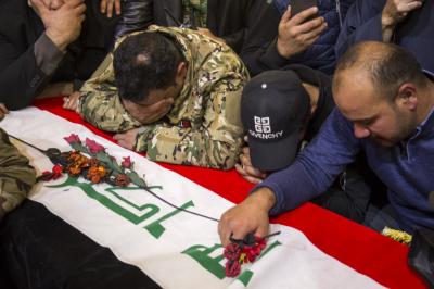 Die beiden Heiligen Husseinitischen und Abbassitischen Stätten empfangen die Leichnamen der Märtyrer des amerikanischen Angriffs Volksmobilisierungseinheiten