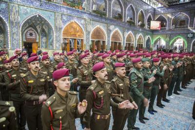 في مبادرةٍ تعبّر عن حبّ الوطن الممزوج بالإيمان بقادته الحقيقيّين، قامت كوكبةٌ من الضبّاط الجُدُد المتخرّجين من الكلّيات العسكريّة العراقيّة بالتشرّف بزيارة مرقد أبي الفضل العبّاس(عليه السلام) وأداء يمين العهد والتحيّة بصورةٍ جماعيّة أمامه، معاهديه على خدمة العراق وحماية أرضه وشعبه في جميع أرجائه دون تمييزٍ بين أبنائه.