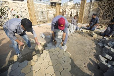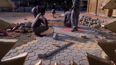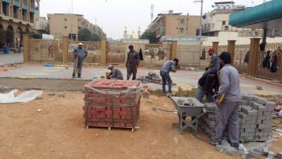 C'est selon ce qui a été indiqué au réseau mondial Al Kafeel par le chef du département de maintenance technique au sanctuaire saint Al Abbas - l'autorité qui supervise la mise en œuvre de ce projet - l'ingénieur Samir Abbas Ali, et a ajouté: "Parmi les travaux que le département a commencé à superviser et à mettre en œuvre figurent la réhabilitation et l'aménagement de la rue Bab Qibla du sanctuaire d'Abi Al-Fadl Al-Abbas (p), qui comprenait plusieurs paragraphes, dont le plus important est l'installation de cloisons métalliques mobiles pour réguler le mouvement des visiteurs et des véhicules, et il a été précédé par la construction de lieux réguliers d'entrée et d'inspection des visiteurs, de sorte que les travaux conduisent ensuite à recouvrir cette zone avec du pavés qui a des formes techniques et d'ingénierie, fournies par l’usine du sanctuaire saint Al Abbas (p).