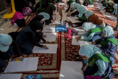 سیدۃ النساء العالمین حضرت فاطمہ الزہرا سلام اللہ علیہا کی المناک شہادت کی مناسبت اور احیائے ایام فاطمیہ کے سلسلے میں روضہ مبارک حضرت امام حسین علیہ السلام اور روضہ مبارک حضرت عباس علیہ السلام کے شعبہ شعائر حسینی اور روضہ مبارک حضرت عباس علیہ السلام کے شعبہ تربیت و اعلی تعلیم کے اشتراک سے بچوں کے لئے ڈرائنگ ورکشاپ کا انعقاد کیا گیا۔ جناب سیدہ سلام اللہ علیہا کے مصائب اور آپ سلام اللہ علیہا پر ڈھائے جانے والے مظالم کو یاد کرتے ہوئے آپ کے جلتے ہوئے گھر کی تصویر کشی کرنا ورکشاپ کا بنیادی تھیم تھا۔ یہ ورکشاپ خاص طور پر دس سال سے کم عمر بچوں کے لئے منعقد کی گئی تھی۔ ورکشاپ کا انعقاد دونوں مقدس روضوں کے درمیان بین الحرمین میں کیا گیا تھا۔ بچوں کی بڑی تعداد نے اس ڈرائینگ ورکشاپ میں شرکت کرتے ہوئے جناب سیدہ سلام اللہ علیہا سے اپنی محبت کا اظہار کیا۔