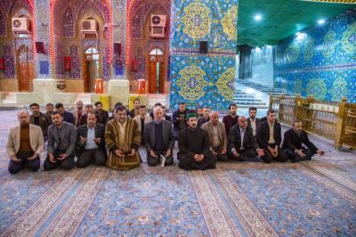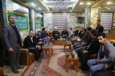 -Treffen der Delegation mit dem geistlichen Bevollmächtigten der Heiligen Husseinitischen Stätte, Seiner Eminenz Scheich Abd Al-Mahdi Al-Karbalaai, der religiösen, pädagogische und aufklärende Ratschlägen und Anweisungen gegeben hatte.
