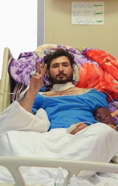 Der verletzte Demonstrant Abbas Al-Koukhi wurde gestern Abend aus dem Ibn Al-Nafees-Krankenhaus in Bagdad ins Al-Kafeel Krankenhaus überwiesen worden, nachdem er von einer Kugel in seinem Nacken getroffen wurde, um dort die nötige Behandlung zu erhalten.