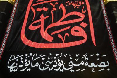 The walls of the Holy Shrine were covered in black, and the hung banners showed the depth of this painful tragedy.