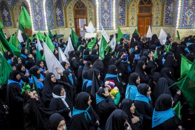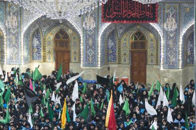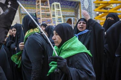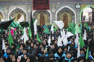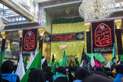 Cette procession de condoléances a rassemblé des dizaines de femmes en deuil sur la tragédie de leur modèle; la fille bien-aimée du Saint Prophète (les prières d'Allah soient sur lui et sa sainte Maison) et la prunelle de ses yeux ; Dame Az-Zahra (que la paix soit sur elle).
