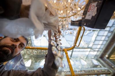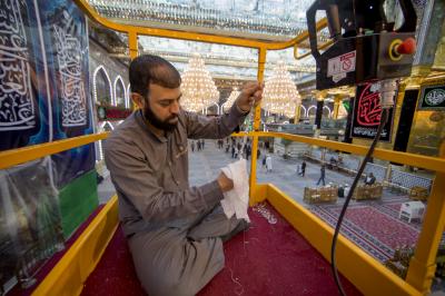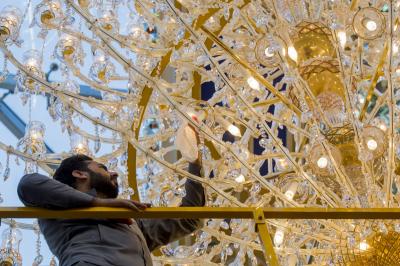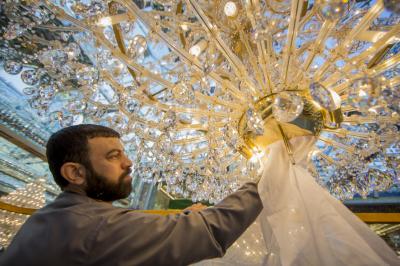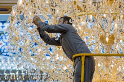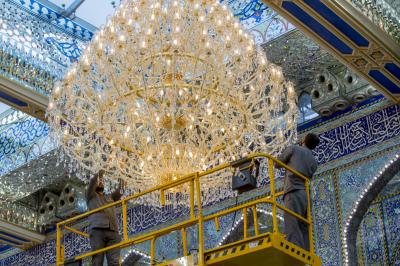 ما أن تدخل إلى الصحن الشريف لمرقد المولى أبي الفضل العباس (عليه السلام) حتى يأخذ بصرك بريق الثريات المتدلية من سقف مشروع توسعة الحرم بتسقيف الصحن (للاطلاع على المشروع اضغط هنا)، وهذا البريق خلفه أيادٍ تقدم خدمات جلية وواضحة تابعة لملاكات شعبة المرايا والثريات في قسم رعاية الصحن الشريف في العتبة العباسية المقدسة، حيث لا تنفك هذه الملاكات عن أعمال الإدامة والصيانة اليومية الخاصة بمرايا وثريات الصحن العباسي المطهر.