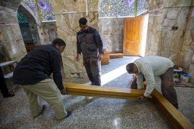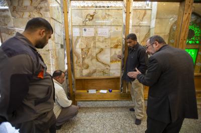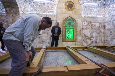 In continuation of the current campaign of works, the staffs of the Department of the Manufacture of the grids and doors of the Holy Shrines of the al-Abbas's (p) Holy Shrine, started the first stages of installing the façade of the grid of the holy Maqam to replace its old grid of tens of years, which led to its erosion and loss of elegance, and lack of relevance to the current expansion and urban development of the Maqam. The new grid was complementary to what was created by the artists of the holy shrine in this place, which is visited annually by hundreds of thousands of visitors from inside and outside Iraq.