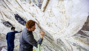 المباشرةُ بصيانة وتزجيج قبّة مرقد أبي الفضل العبّاس (عليه السلام) من الداخل ... »