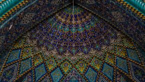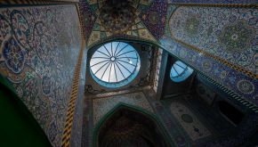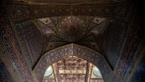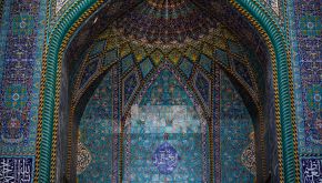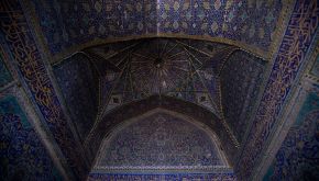 رغم دقّة تنفيذها وتفاصيلها الفنيّة: أعمالُ الزخرفة والنقوش لبوّابة قبلة أبي الفضل العبّاس (عليه السّلام) من الداخل تصل الى مراحل م ... »