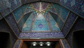 رغم دقّة تنفيذها وتفاصيلها الفنيّة: أعمالُ الزخرفة والنقوش لبوّابة قبلة أبي الفضل العبّاس (عليه السّلام) من الداخل تصل الى مراحل م ... »