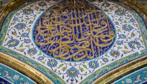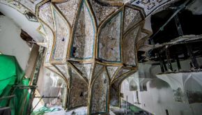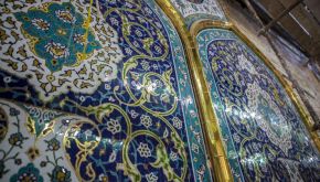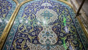 رغم دقّة تنفيذها وتفاصيلها الفنيّة: أعمالُ الزخرفة والنقوش لبوّابة قبلة أبي الفضل العبّاس (عليه السّلام) من الداخل تصل الى مراحل م ... »
