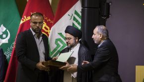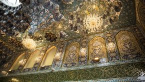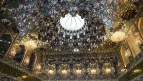 رغم دقّة تنفيذها وتفاصيلها الفنيّة: أعمالُ الزخرفة والنقوش لبوّابة قبلة أبي الفضل العبّاس (عليه السّلام) من الداخل تصل الى مراحل م ... »