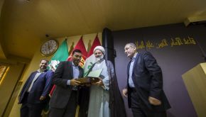 رغم دقّة تنفيذها وتفاصيلها الفنيّة: أعمالُ الزخرفة والنقوش لبوّابة قبلة أبي الفضل العبّاس (عليه السّلام) من الداخل تصل الى مراحل م ... »