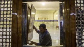 نقوشٌ وزخارف من الخشب الطبيعيّ يكتسي بها شبّاكُ صافي الصفا من الداخل ... »