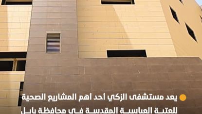 أكد قسم المشاريع الهندسية في العتبة العباسية المقدسة أنّ نسبة الإنجاز بمبنى مستشفى الزكي التخصّصي في محافظة بابل وصلت إلى أكثر من (47%).