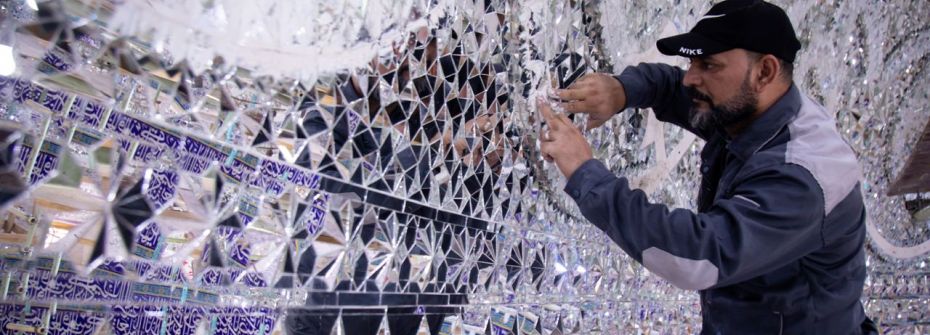 اللّمسات الأخيرة لصيانة وتزجيج قبّة مرقد أبي الفضل العبّاس (عليه السلام)