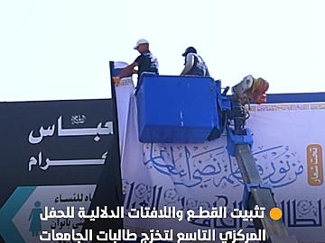 الانتهاء من تثبيت القطع واللافتات الدلالية للحفل المركزي التاسع لتخرّج طالبات الجامعات العراقية والإسلامية..