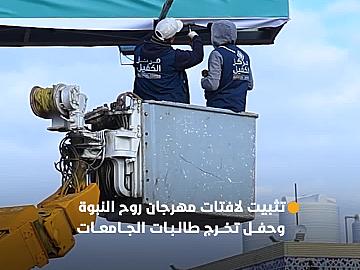 الانتهاء من تثبيت لافتات مهرجان روح النبوة الثامن والحفل المركزي لتخرج طالبات الجامعات العراقية العاشر