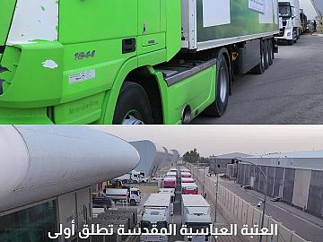 العتبة العباسية المقدسة تطلق أولى قوافلها الإغاثية إلى الشعب الإيراني