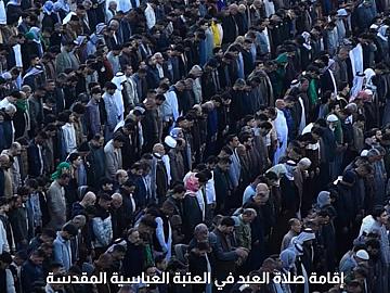 المؤمنون يحيون صلاة عيد الفطر المبارك في صحن مرقد أبي الفضل العباس (عليه السلام) وساحة بين الحرمين.